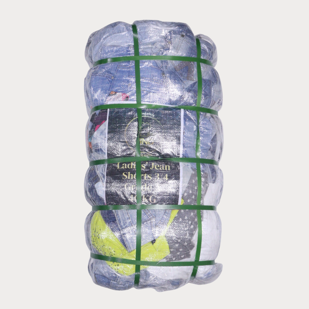 Our 45 kg bale of Grade A women’s 3/4-length denim shorts offers a curated selection of high-quality, fashionable bottoms. These pieces combine the casual appeal of denim with a length that hits just below the knee—ideal for style, coverage, and comfort. This assortment includes a variety of washes, sizes, and fits to meet the needs of your clientele.
