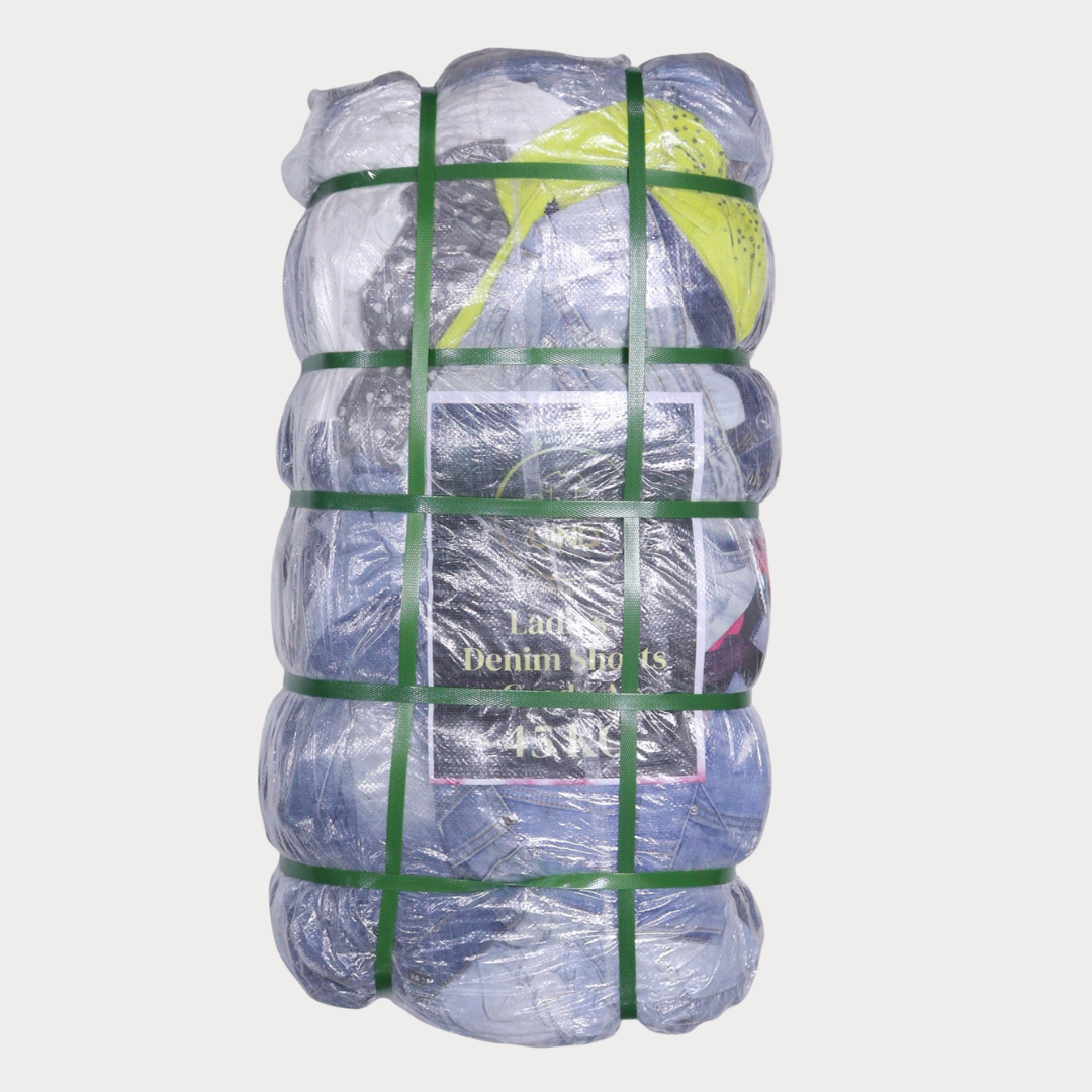 Each bale weighs 45 kg and includes approximately 160–200 pairs of denim shorts (actual quantity may vary based on size and item weight).