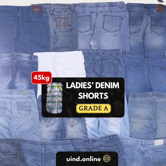 Our 45 kg bale of Grade A ladies’ denim shorts delivers a high-quality selection of fashionable summer essentials. These items are perfect for everyday wear, featuring durable denim fabric, stylish cuts, and a mix of colors and sizes to appeal to a broad audience.