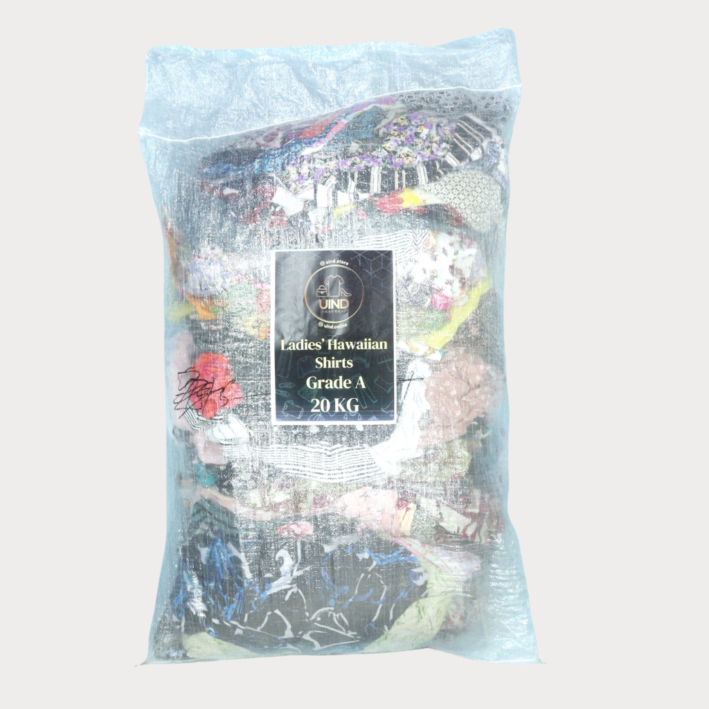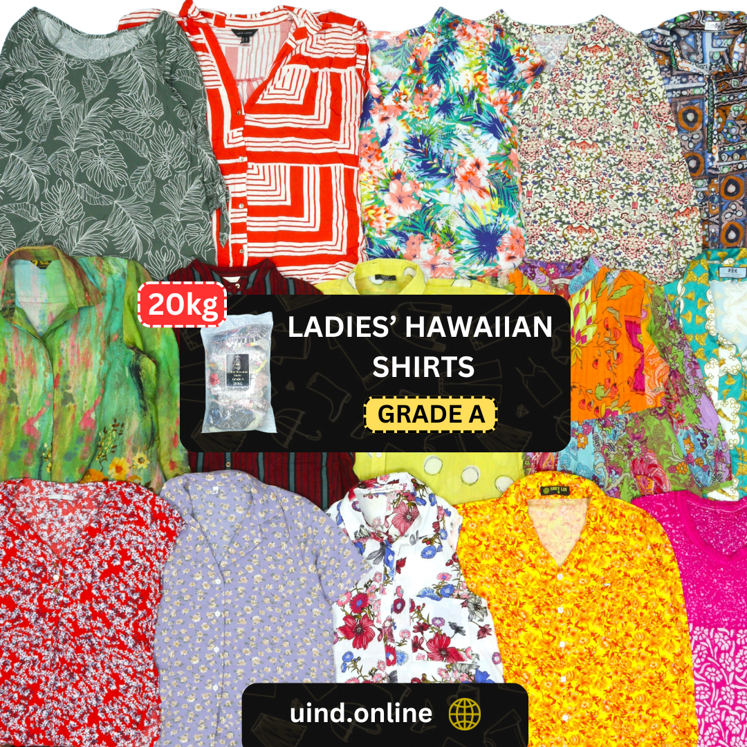 Our 20 kg bag of Grade A ladies’ Hawaiian shirts includes a curated collection of premium, vibrant tropical shirts. Ideal for resort wear, casual outings, or relaxed summer collections, these shirts combine fun prints with softness and breathability.