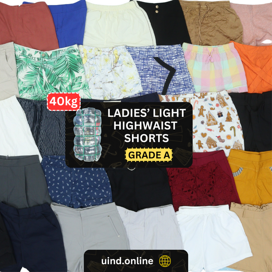 👗 Product Overview: Our 40kg bale of Grade A ladies' light high-waist shorts offers a curated selection of high-quality, fashionable garments. These shorts are perfect for various occasions, providing both style and comfort. The assortment includes a diverse range of colors, patterns, and sizes to cater to different customer preferences.