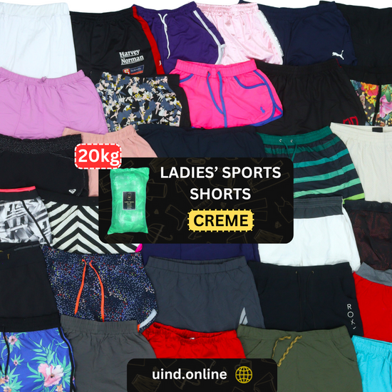 🏃♀️ Product Overview: Our 20kg bag of Crème Grade ladies' sports shorts offers a premium selection of high-quality, fashionable activewear. These sports shorts are perfect for various fitness activities, providing both style and comfort. The assortment includes a diverse range of colors, patterns, and sizes to cater to different customer preferences.