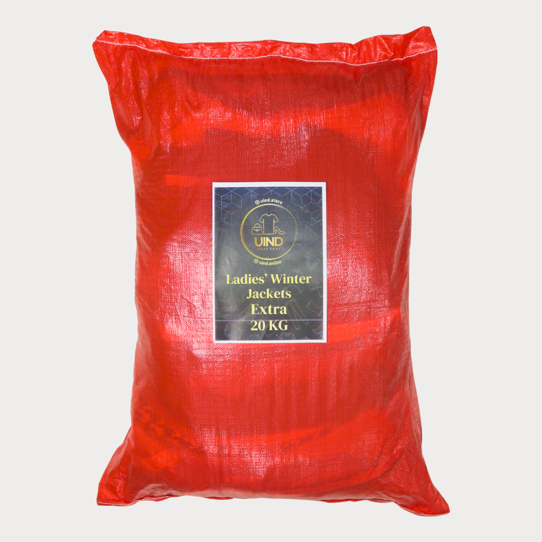 Our 20 kg bag of Grade Extra ladies’ winter jackets includes a selection of superior-quality, warm outerwear. These jackets are chosen for their excellent condition and suitability for cold weather — ideal for winter collections or retail winter stock.