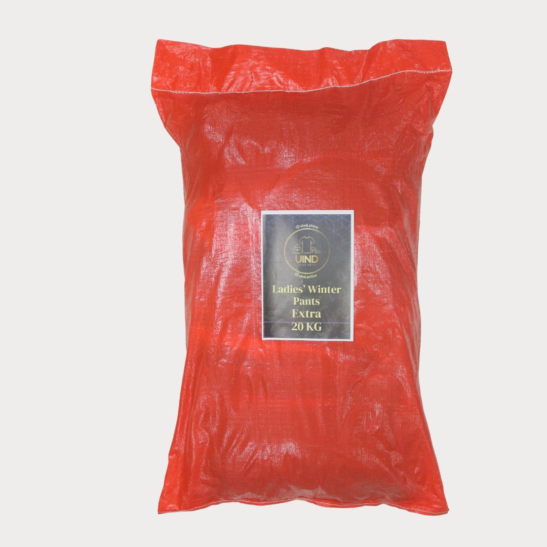 This 20kg bag of Grade A Extra ladies’ winter pants offers a premium selection of warm, comfortable, and high-quality bottoms perfect for cold weather. Each piece is carefully inspected to ensure excellent condition, modern styles, and cozy materials such as fleece-lined, wool-blend, thermal, and thick cotton fabrics. Expect a fashionable variety of colors, designs, and sizes suitable for everyday winter wear.