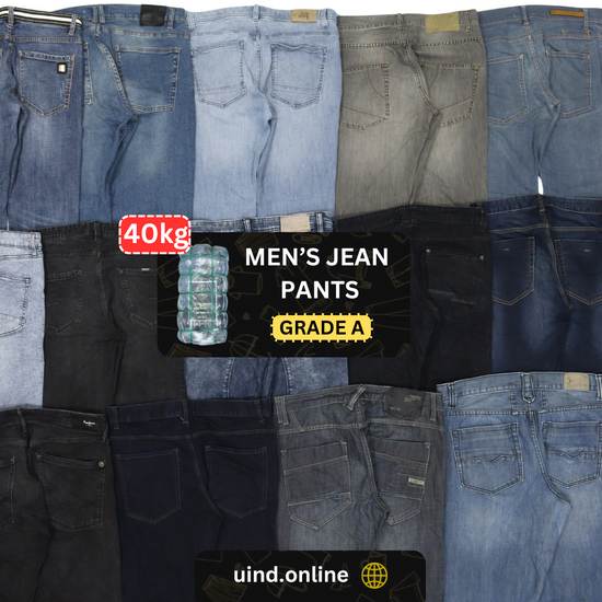 šŸ‘– Product Overview: Our 40kg bale of Grade A men's jeans pants offers a curated selection of high-quality, fashionable denim trousers. These jeans are perfect for various occasions, providing both style and comfort. The assortment includes a diverse range of colors, patterns, and sizes to cater to different customer preferences.